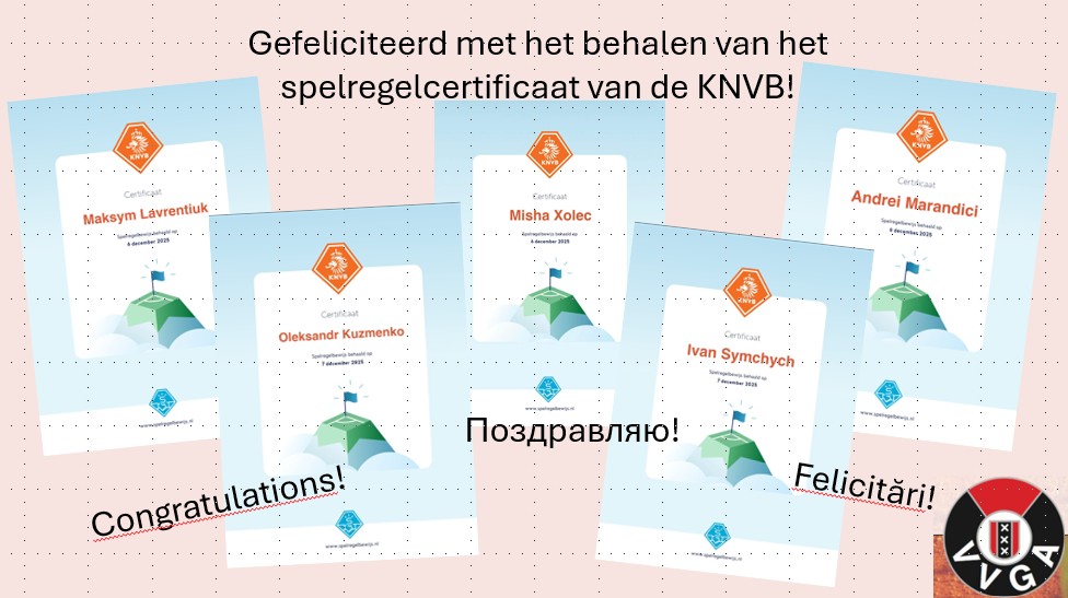 Vijf spelers uit Zondag 2 hebben onlangs het - voor hun verplichte - spelregelbewijs gehaald. Gefeliciteerd!